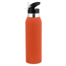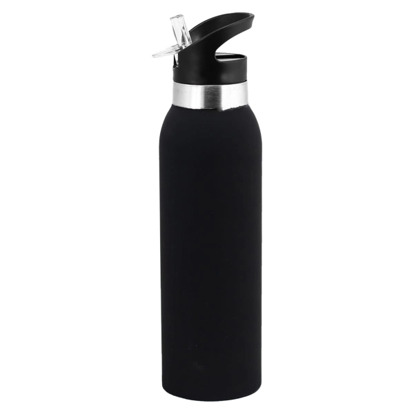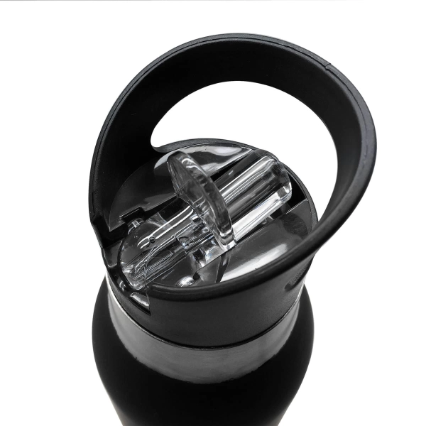 500ml BPA free vacuum insulated stainless steel double wall drink bottle high quality rubberized finish that is extremely comfortable to hold and laser engraves to natural silver colour has a secure screw on lid with carry handle and flip out drinking nozzle with drink straw. It is not dishwasher safe handwashing is recommended.