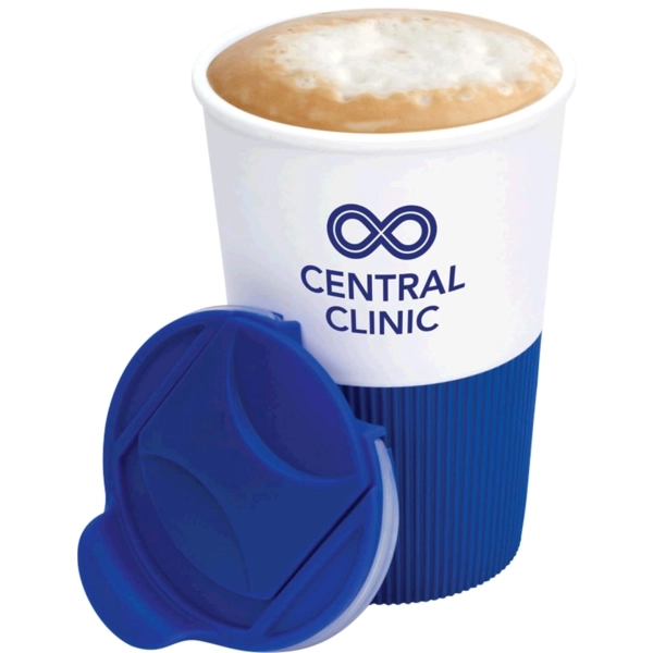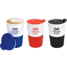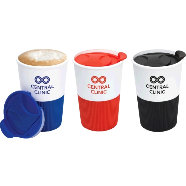 Verona Coffee Mug is designed to avoid inconvenient spills in and around the office and in the car. These plastic mugs feature a non-spill lid, heat resistant silicone grip and compact size to fit under most office coffee machines. Available with black, blue or red trim.