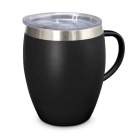 Premium 300ml double wall, vacuum insulated stainless steel coffee cup which has a handle and will keep drinks hot or cold for hours. It has a stunning powder coated finish and a transparent push on slider lid. Verona is BPA-free, laser engraves to a shiny steel finish. The cup is presented in a black gift box. This product is not dishwasher safe and handwashing is recommended.