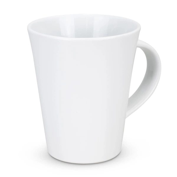 Latte-style 320ml stoneware coffee mug that has a gloss finish and is presented in a natural gift box.