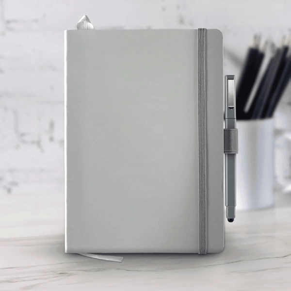 Soft touch, hard cover bound journal with built in elastic closure. Available in 6 colours