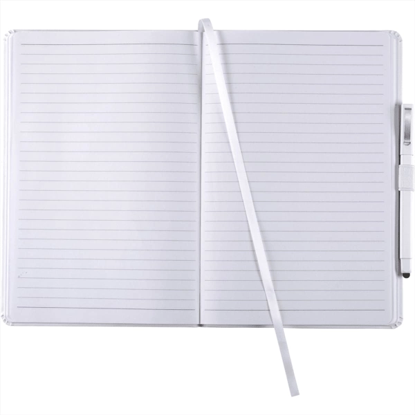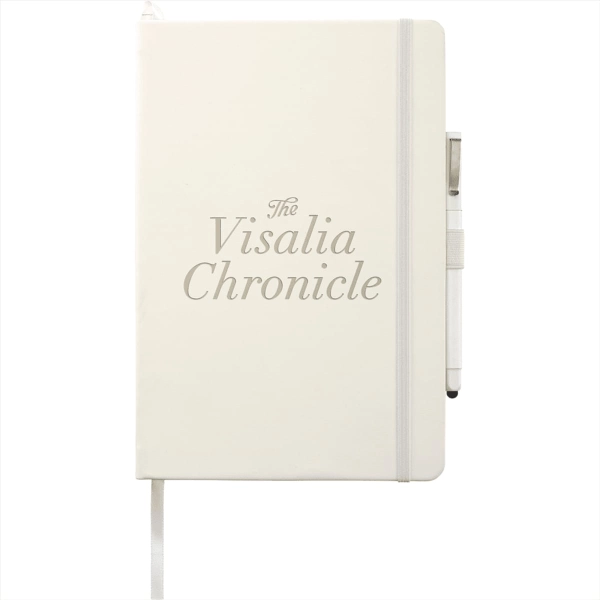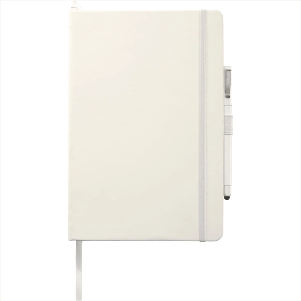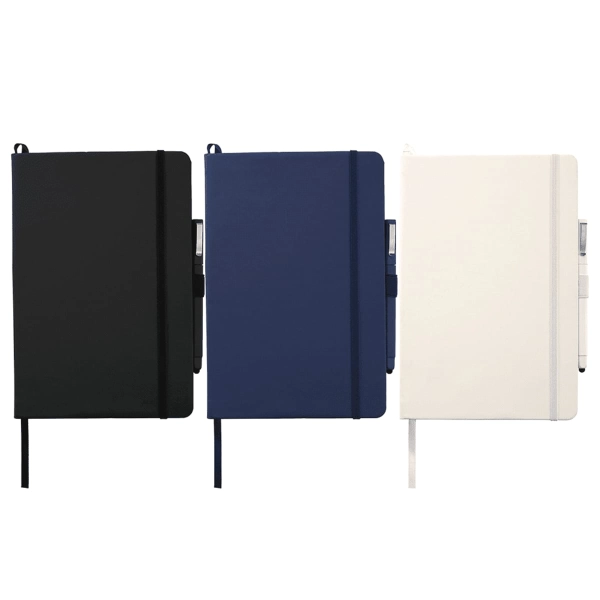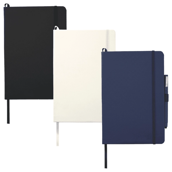 Soft touch, hard cover bound journal with built-in elastic closure.