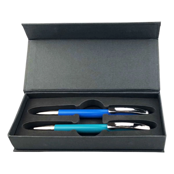 The View Supreme Writing Set is a premium Italian-made gift set designed to impress. Housed in a sleek black cardboard box with a foam insert, it features the Maxema View pen crafted from nontoxic, high-quality ABS plastic with a vibrant barrel, chrome tip, and a striking metal clip ideal for branding. Its smooth twist-action mechanism and jumbo refill offer up to 2500 metres of black or blue ink, ensuring lasting performance. Exclusive to Dex Collection in Australia and New Zealand, this set is the perfect fusion of style, function, and exceptional presentation for corporate gifting.