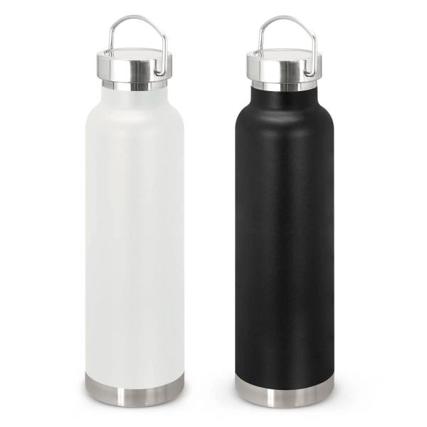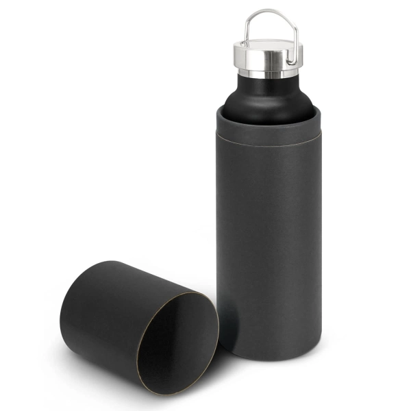 Large 700ml double wall, vacuum insulated stainless steel drink bottle with a tough powder coated matt finish. It will keep drinks cold for 24 hours or hot for up to 12 hours. Viking has a secure screw on stainless steel lid with a foldaway metal carry handle. It is BPA-free and laser engraves to a stainless steel finish. Viking is presented in a black gift box or an optional gift tube. This product is not dishwasher safe and handwashing is recommended.