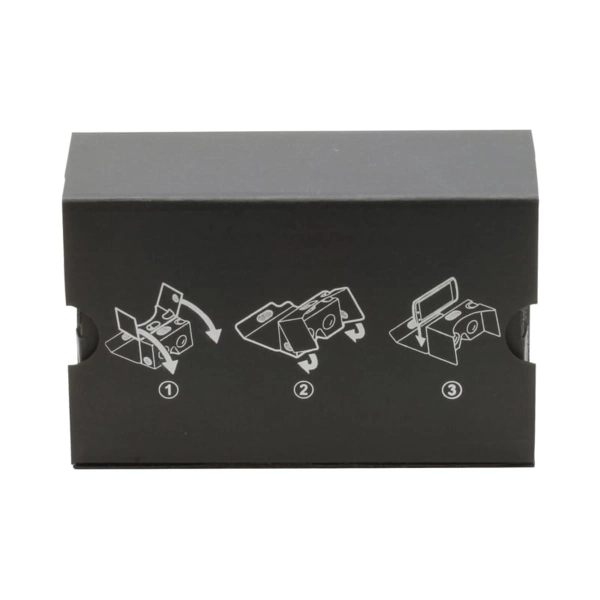 A fun new way to experience virtual reality with these simple cardboard viewers. Simply fold them and look inside to enter the world of 360 degree VR. Visit new places, play immersive games, fly through space and more. Works in conjunction with the Play Store Apps or your customers own APP. These come pre assembled ready to use.