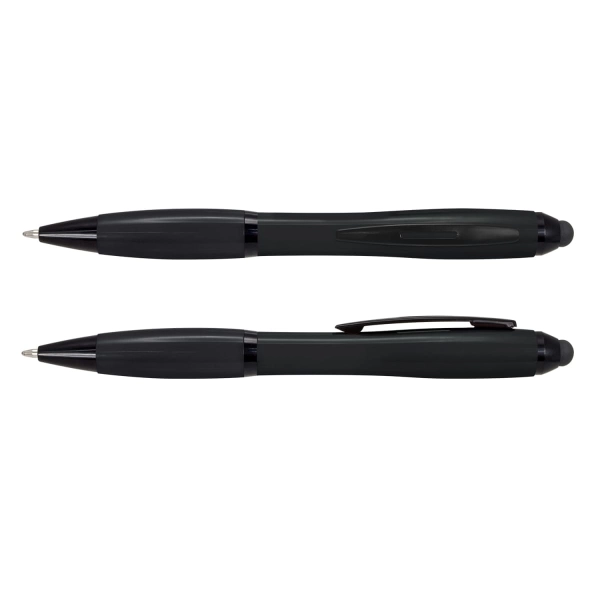 Twist-action plastic ball pen with black trim which has a stylus for use with touch screens and a black refill with 600 metres of German manufactured Dokumental ink and can be presented in an optional pen sleeve.
