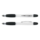 Twist-action plastic ballpoint pen with a white barrel, a soft-touch grip and shiny chrome trim. It has a stylus for use with touch screens and a yellow wax highlighter which will never dry up. Vistro has a black refill with 600 metres of German manufactured Dokumental ink and can be presented in an optional pen sleeve.