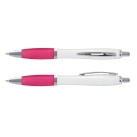 * Retractable plastic ballpoint pen with a glossy white barrel