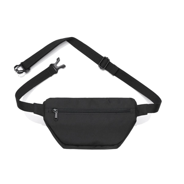 One large main compartment, one external zipped pocket, adjustable waist strap, YKK zips
