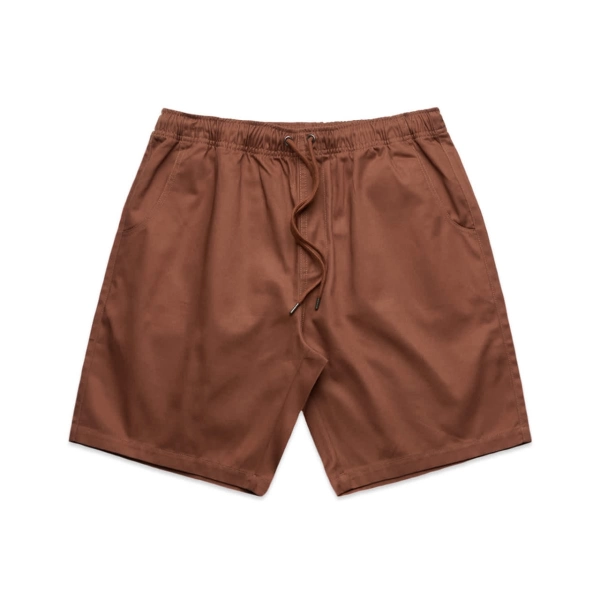 2 side pockets, jet pockets at back with button closure, elasticated waistband with metal tipped draw cord, preshrunk to minimise shrinkage