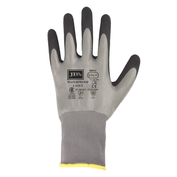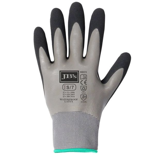JB's Waterproof Dbl Latex Coated Glove 5 Pk Grey/Black