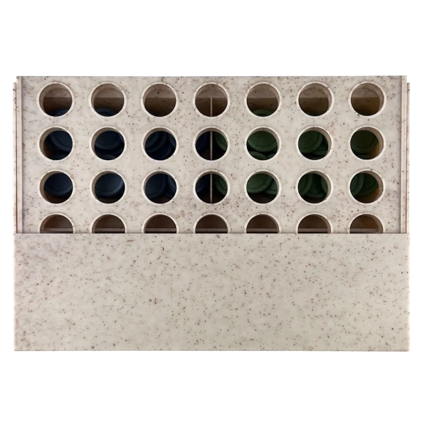 Wheat straw connect four is a fun classic tabletop game where players take turns to try and connect four dots in a row taking a turn one after the other. It is made of 50/50 blend of natural wheat straw fibre and BPA-free polypropylene.