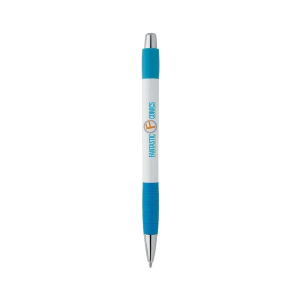 This colourful plunge-action pen keeps things simple but never boring. With a smooth click and crisp finish, it’s an easy way to brighten up your stationery stash. Available with blue or black ink and designed to let your branding pop without the extra fuss.