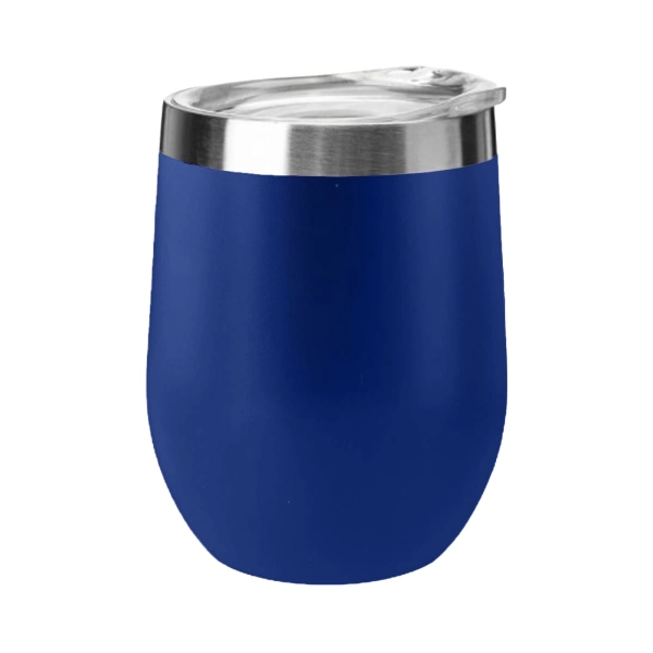 350ml (two standard glasses of wine) 304 grade stainless steel egg shape wine and coffee cup with a BPA free push-seal plastic lid powder coated matt finishing exterior and electrolysis interior double walled and vacuum insulated technology will keep your white wine cold around 7-9 hours while you sit out at the pool on a hot summer day or your coffee hot around 3 hours when you just need one little steamy cup of joy to start your day off right.