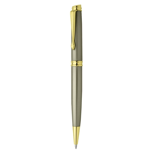 Distinctive design metal pen made of copper quality and heavy weight gold plated trim twist action with Inclined top and metal Parker-Type German manufactured black ink refill 1200 meters writing distance tungsten carbide ball provides you with quality writing.
