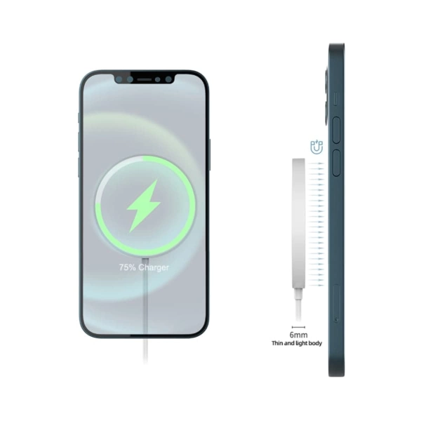 The Wolf Magnetic Wireless Charger quickly and securely aligns with your iPhone 12-15. Its 15 Watt output, ultra-slim base, one-metre integrated cable and internal protection enable fast and efficient charging. Includes Type-C charge cable and user manual. Material: ABS, PC. PLEASE NOTE: For fast charging, your phone must support fast charging, and you will need a Quick Charge 3.0 adaptor (not included). If you require this added option, please look at our Alba 20W QC 3.0 wall charger (AR1369).