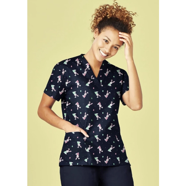 Womens Easter V-Neck Short Sleeve Scrub Top