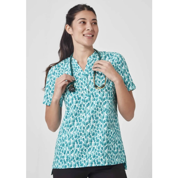 Features: Designed with a flattering Y-neck open and mandarin collar, simple lines and no chest pocket for a clean look