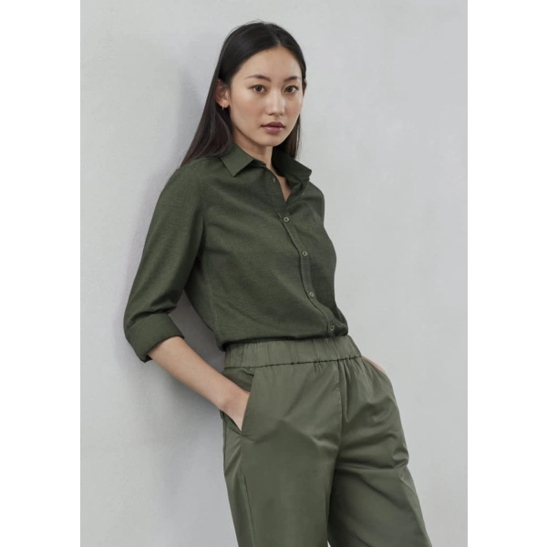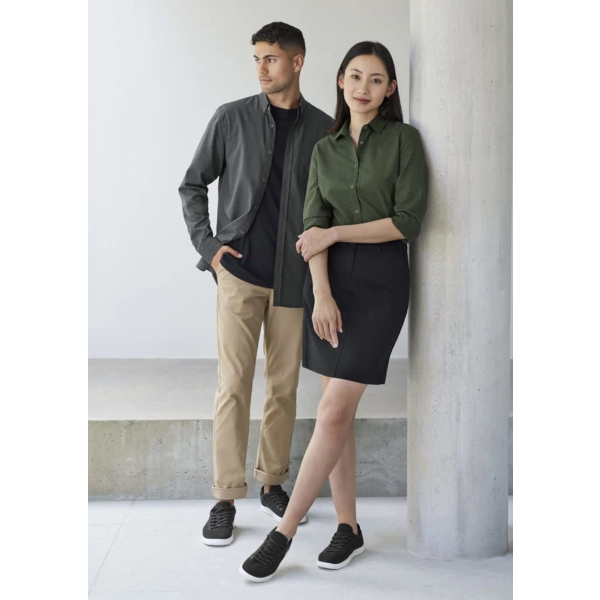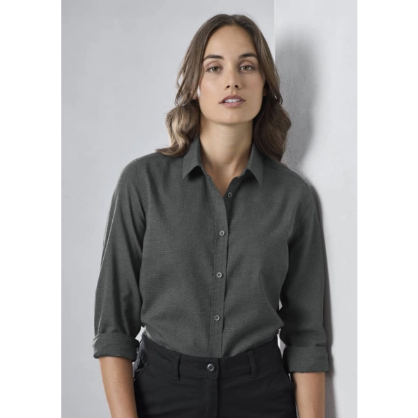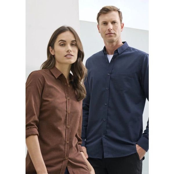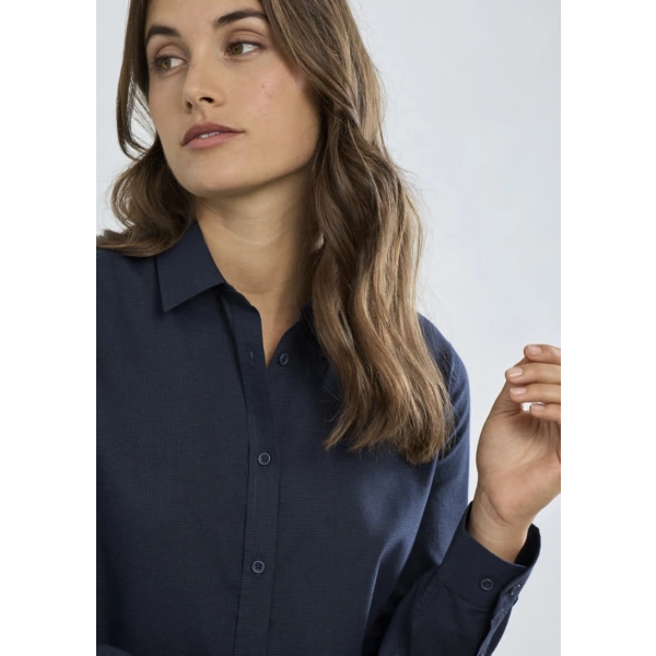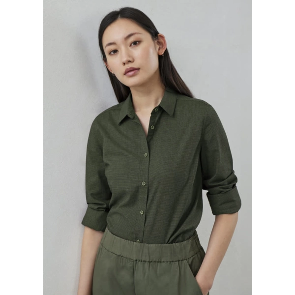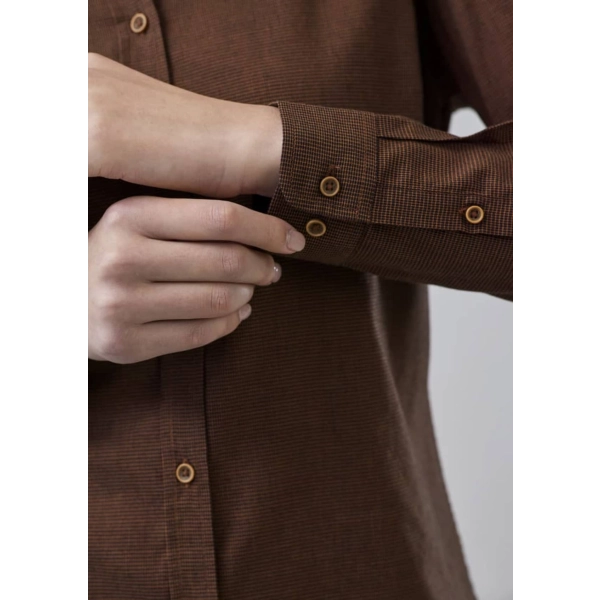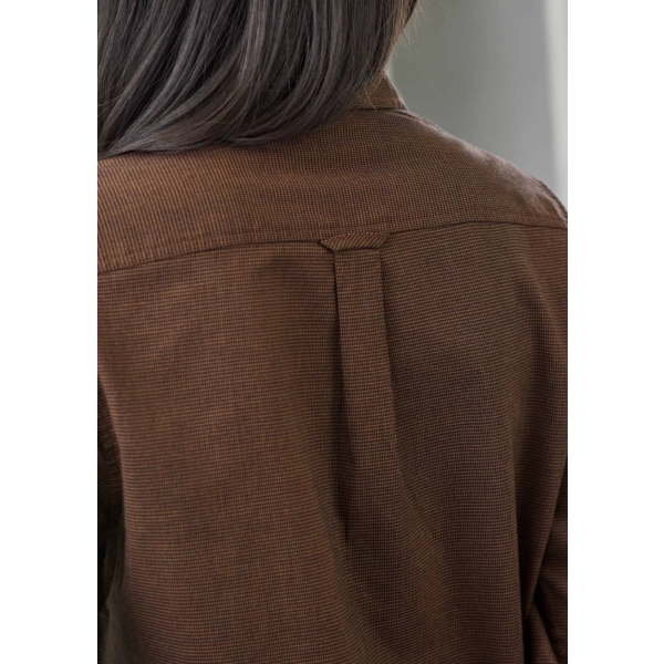 Fabric: 60% Cotton, 40% Recycled Polyester; Yarn-dyed Micro-check; 120 GSM; UPF Rating 15+
