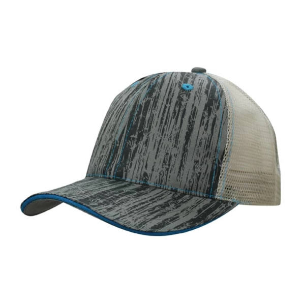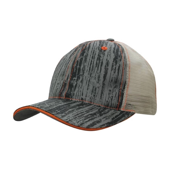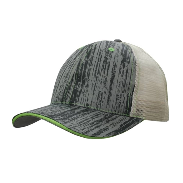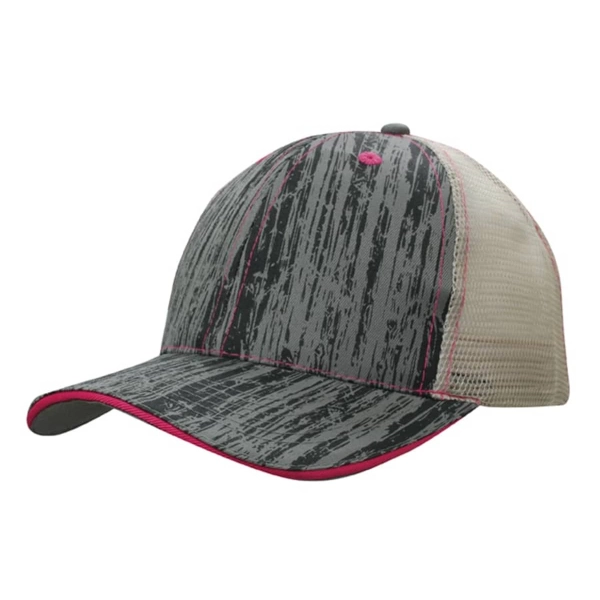 Bring a unique, nature-inspired look with this wood-printed cap, designed with a breathable mesh back for comfort and style. The structured six-panel design and pre-curved peak offer a secure fit, while the fabric-covered short touch strap allows for easy adjustments. Made from a durable cotton and mesh blend, this cap is perfect for outdoor adventures or adding a distinctive touch to everyday wear.