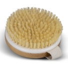 Handy body brush manufactured from wood with sisal bristles and woven cotton strap. Wood is a natural material that produces unavoidable variances in the grain pattern, colour and branding.