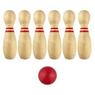 A perfect travel game to put in your bag to play anywhere and entertain the little ones in the house! Ten pin wooden bowling set packed into a soft cotton draw-string bag which can also be branded. Contains six small wooden pins and 1 small red wooden bowling ball.