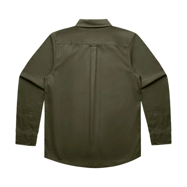 Long sleeve button up shirt, two chest pockets with pen channel, tonal buttons, side seamed, back yoke with hang loop, preshrunk to minimise shrinkage