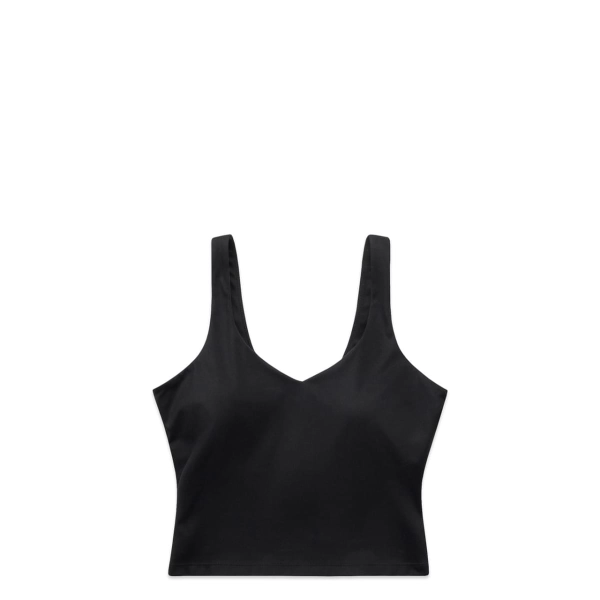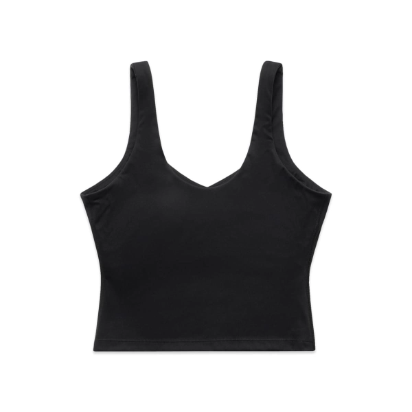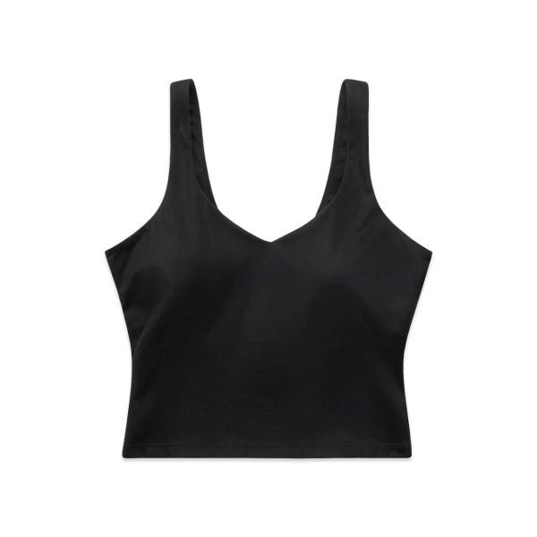 Matte finish, internal bra, removable bust cups, Mid length, moisture wicking, quick drying, high elastane content for resilience, suitable for low to medium impact activities