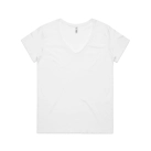 Low V-neck, self fabric rib on neck, side seamed, shoulder to shoulder tape, double needle bottom hem, preshrunk to minimise shrinkage
