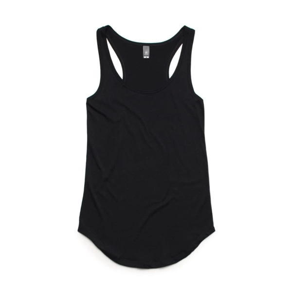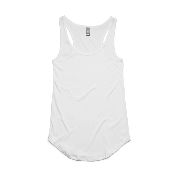 Racerback, panel detail at back, curved tails, self-fabric bindings, double needle bottom hem, preshrunk to minimise shrinkage