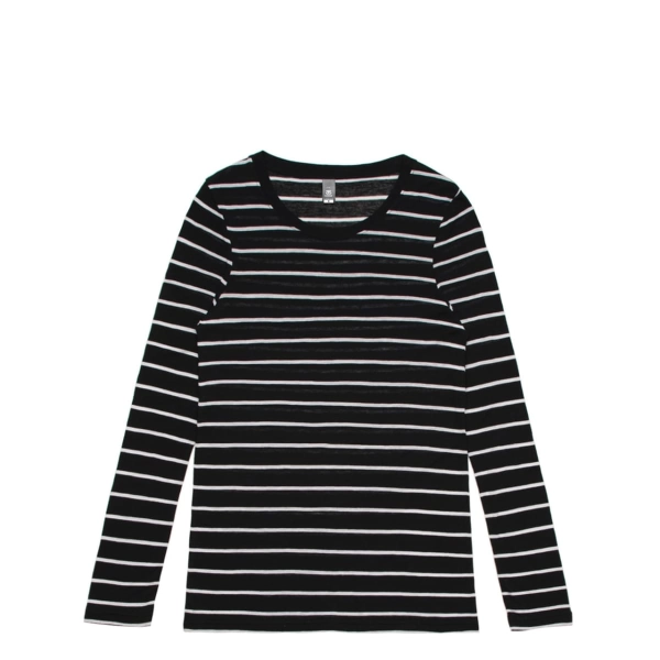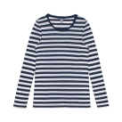 Crew neck, fine breathable fabric, varied stripe width across colours, neck ribbing, side seamed, shoulder to shoulder tape, double needle hems, preshrunk to minimise shrinkage