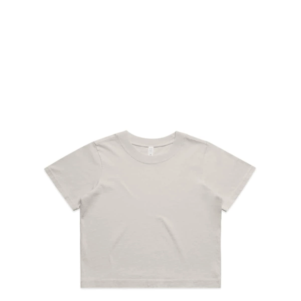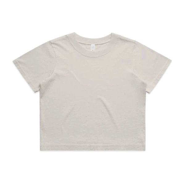 The AS Colour Womens' Heavy Faded Crop Tee, crafted from 100% carded cotton for durability and comfort. With a heavy 240 GSM weight and garment dyed finish, it features a cropped relaxed fit, shoulder to shoulder tape, and twin-stitched wide neck ribbing. Built to last for a timeless, relaxed look.