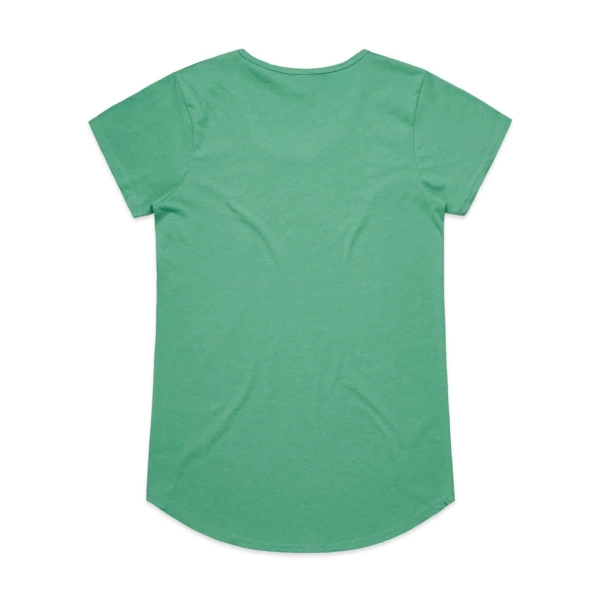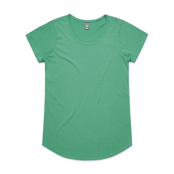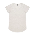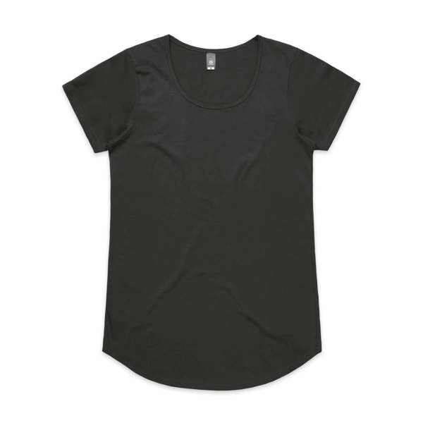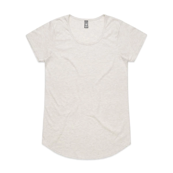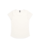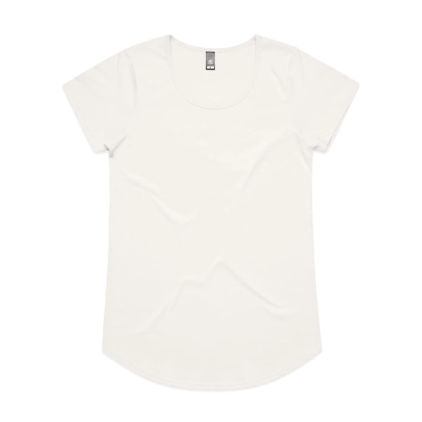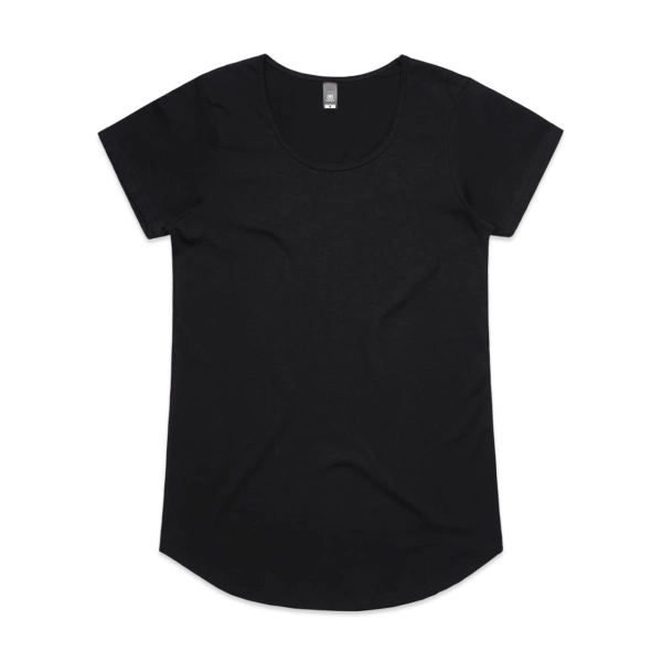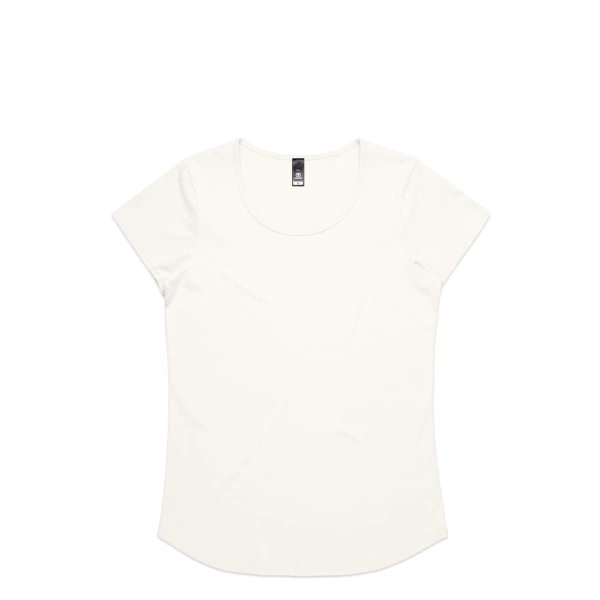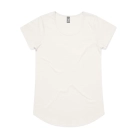 Scoop neck, capped sleeves, curved hem, self-fabric binding on neck, side seamed, double needle hems, preshrunk to minimise shrinkage