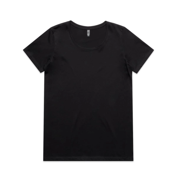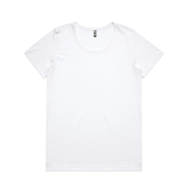 Introducing the Wo's Maple Scoop Tee in a regular fit. Made from mid-weight 180 GSM 100% combed cotton, it features neck ribbing, a scoop neck, side seams, and double-needle hems. Preshrunk for minimal shrinkage.