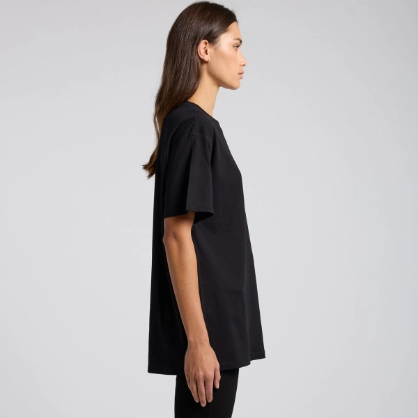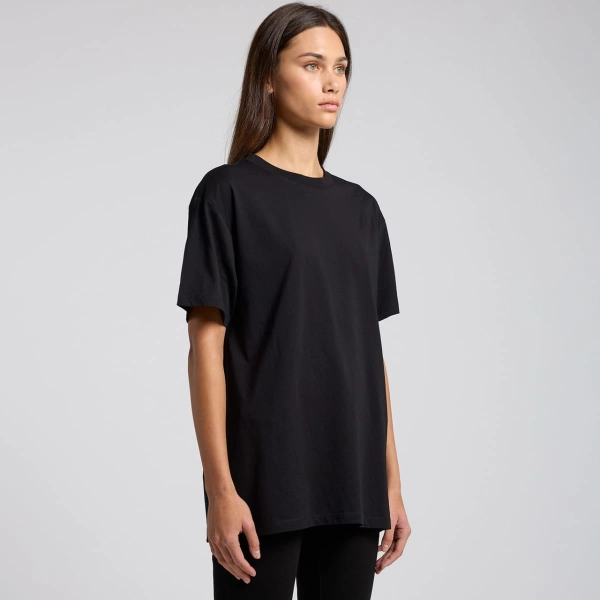 Neck ribbing, drop shoulder, oversized fit, long length, side seamed, shoulder to shoulder tape, double needle hems, preshrunk to minimise shrinkage