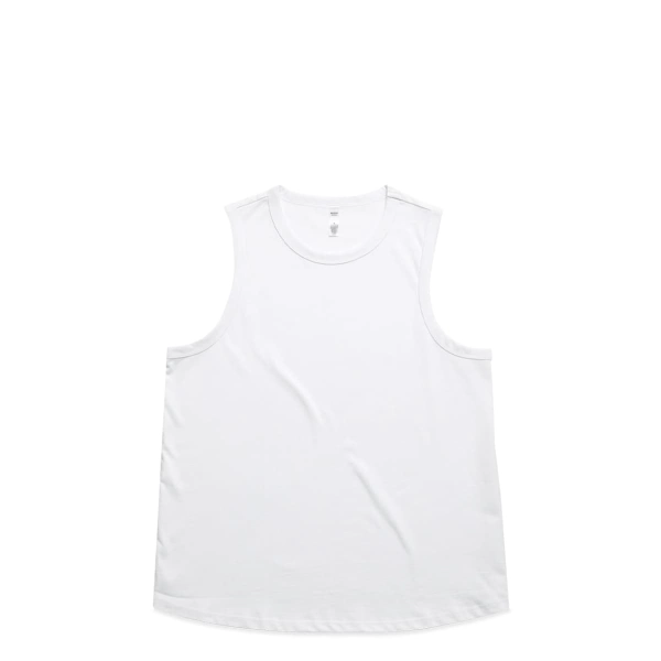 Wide binding at neck and armholes, side seamed, shoulder to shoulder tape, double needle hems