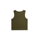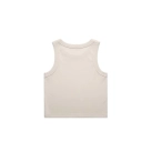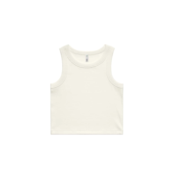 Self fabric wide binding, 2x2 rib, double needle hem, crop length, preshrunk to minimise shrinkage