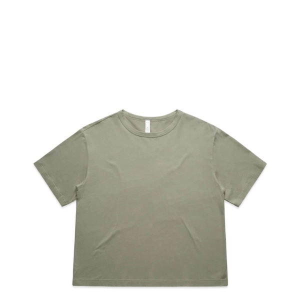 Bound collar, boxy fit, hem splits at side seams, double needle hem, pre-shrunk to minimise shrinkage