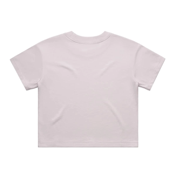 Rib neck, mid length, boxy fit, double stitched hem, preshrunk to minimise shrinkage