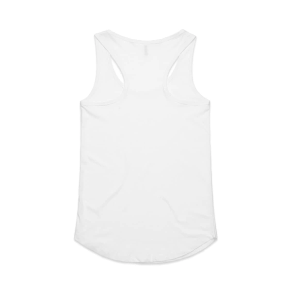 Curved hem, racer back detail, self-fabric binding at neck and armholes, double needle bottom hem, preshrunk to minimise shrinkage