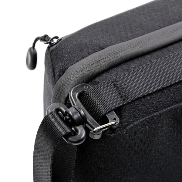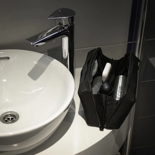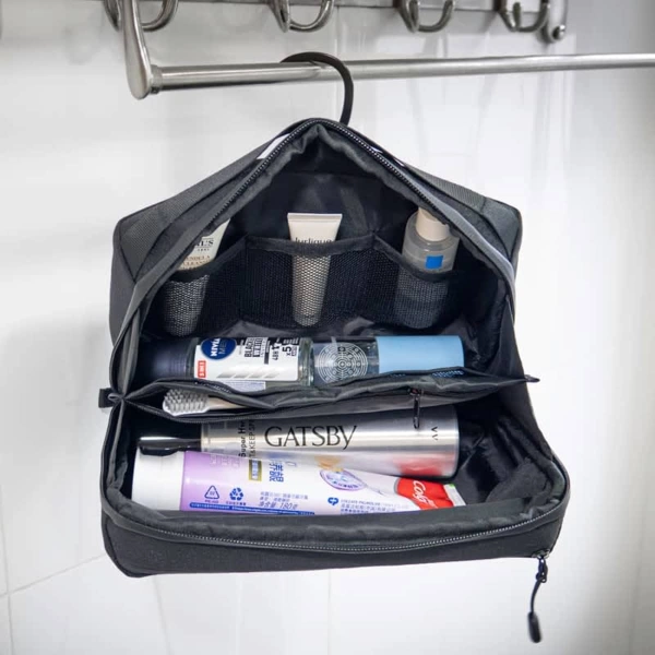 Meet the Zen Bag: the ultimate all-in-one accessory bag crafted from recycled PET bottles. This versatile bag is the ideal corporate gift, blending the functionality of a toiletry bag, the organisation of a tech organiser, and the convenience of a crossbody/shoulder bag for everyday use. With numerous pockets, this Zen bag is adaptable for carrying personal care products or a full range of tech gadgets. It's designed to stand upright on a counter or hang from a concealed metal hook, providing flexibility in any setting. Constructed with a durable semi-hard shell and made from weatherproof, easy-to-clean recycled materials, the Zen Bag is tough enough to endure daily wear and tear while repelling water and stains, ensuring it remains pristine for years to come. Material: Recycled PET, Recycled Polyester.